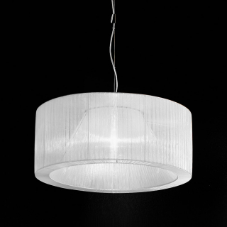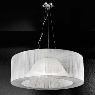 Стильная, современная коллекция светильников - Atena. Каркас из хромированного металла. Абажур-хромированный металл, с покрытием из органзы, доступен в следующих цветах: органза черная, органза белая, органза янтарного цвета.