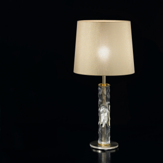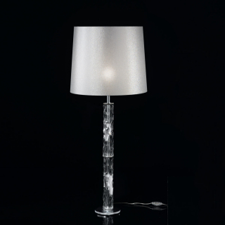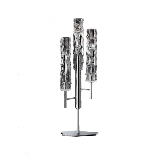 Стильный современный настольный торшер Bamboo. Металлический каркас доступен в отделке: хром, позолота и черный сатиновый никель. Декоративные светорассеиватели "трубы" из Муранского стекла с чеканкой. Доступны с цветной декоративной металлизированной полосой - хром или золото, полностью металлический хром, полностью прозрачный.